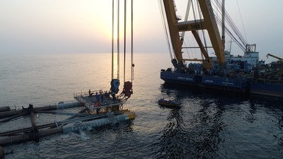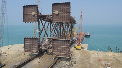 The F18 Jacket weighing 1800 Tons, transported from Qeshm yard and installed in Foroozan field in Persian Gulf Foroozan shared oil field with Saudi Arabia. Transportation and installation of F18 topside deck will be started subsequently within a short time.